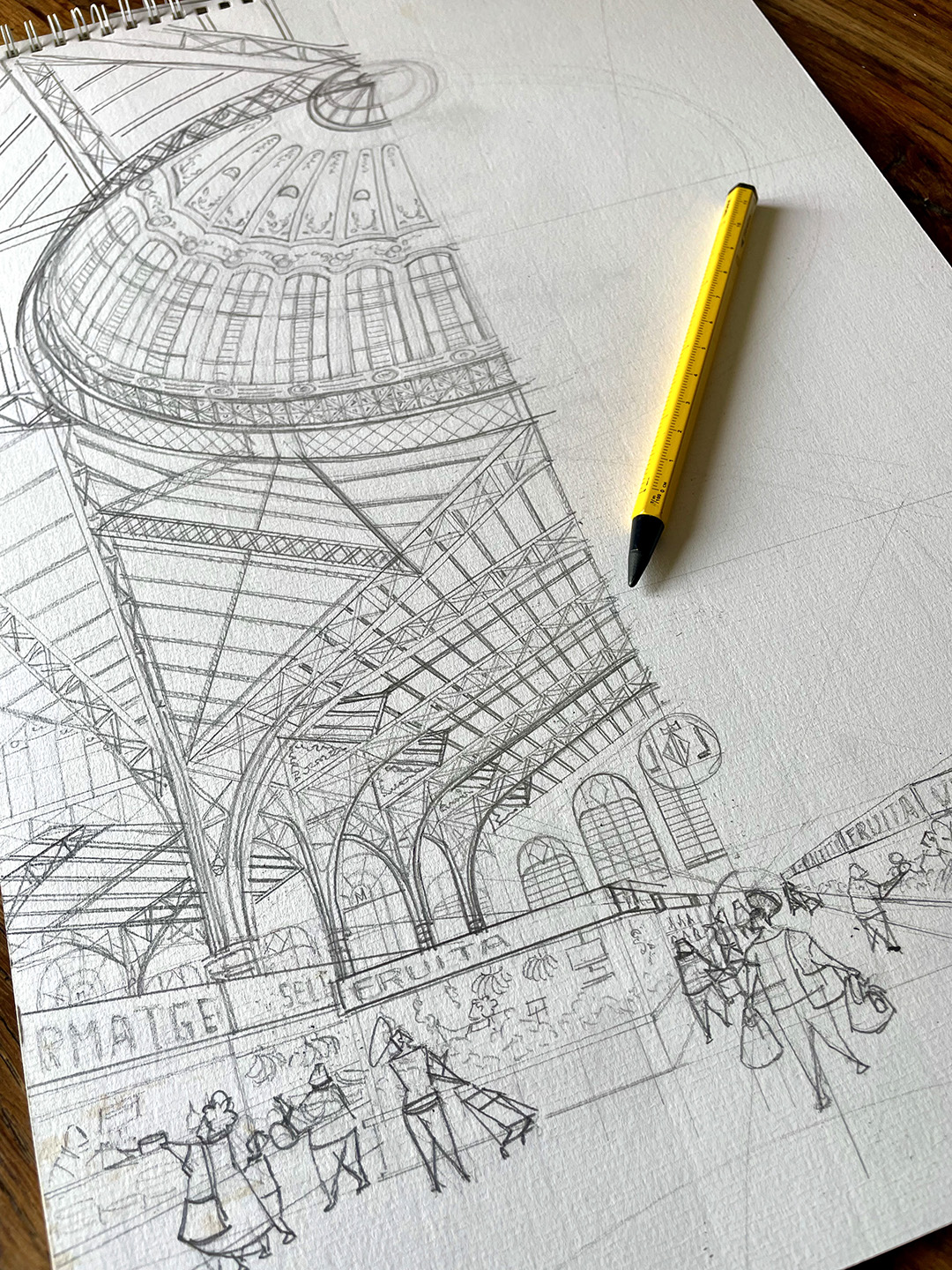 A whole century of Valencia’s history is tucked away under this gorgeous dome. It’s like a city within a city, where brand-new stalls sit right alongside spots that have been run by the same families for five generations. That’s exactly what I wanted to capture in this piece—the sheer scale of this place, how it feels both endless and incredibly beautiful.