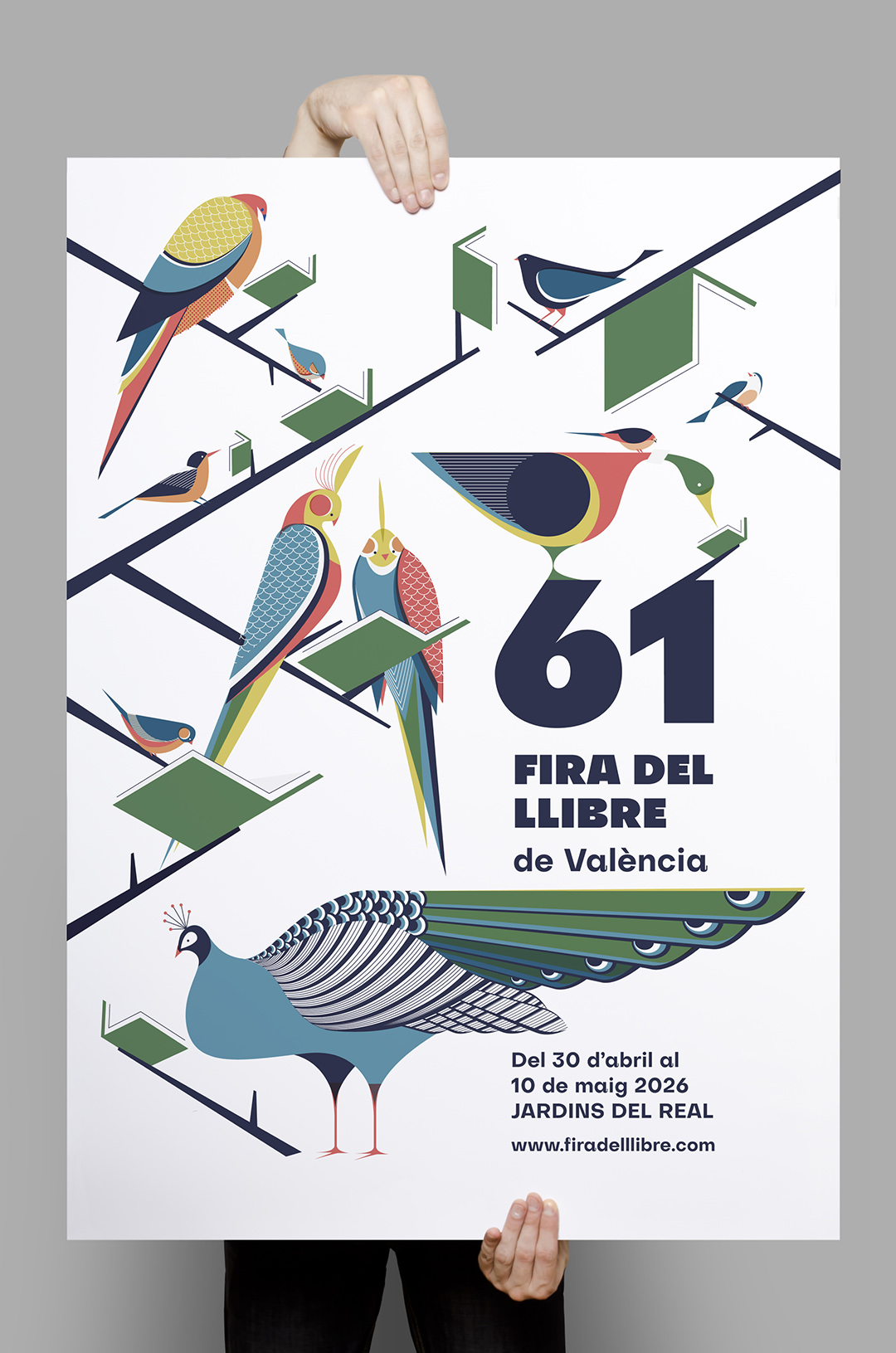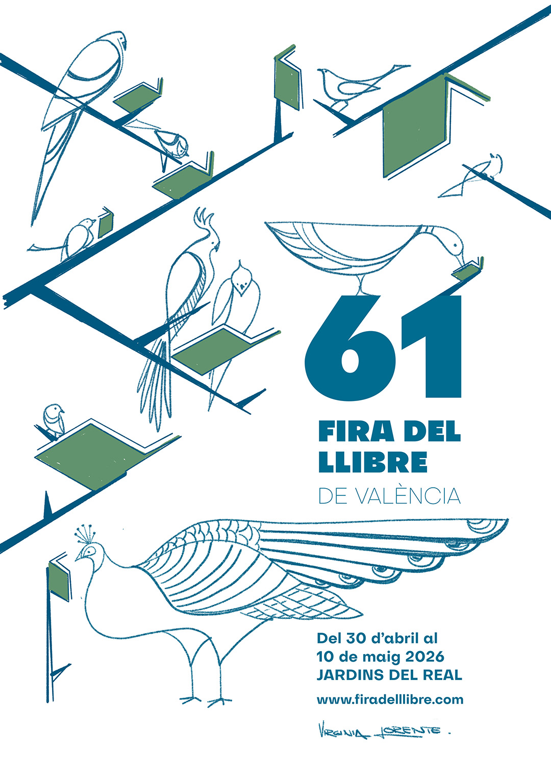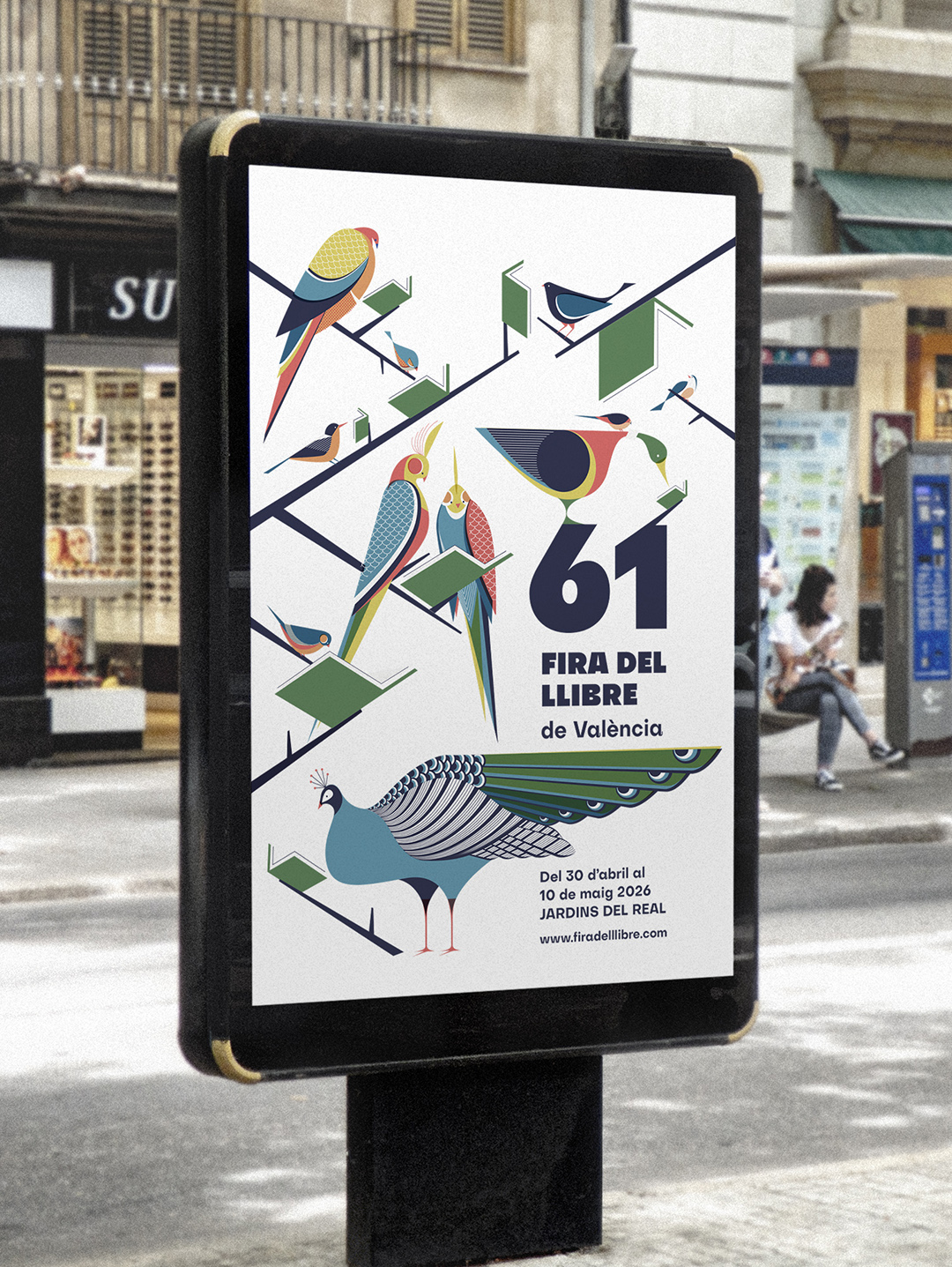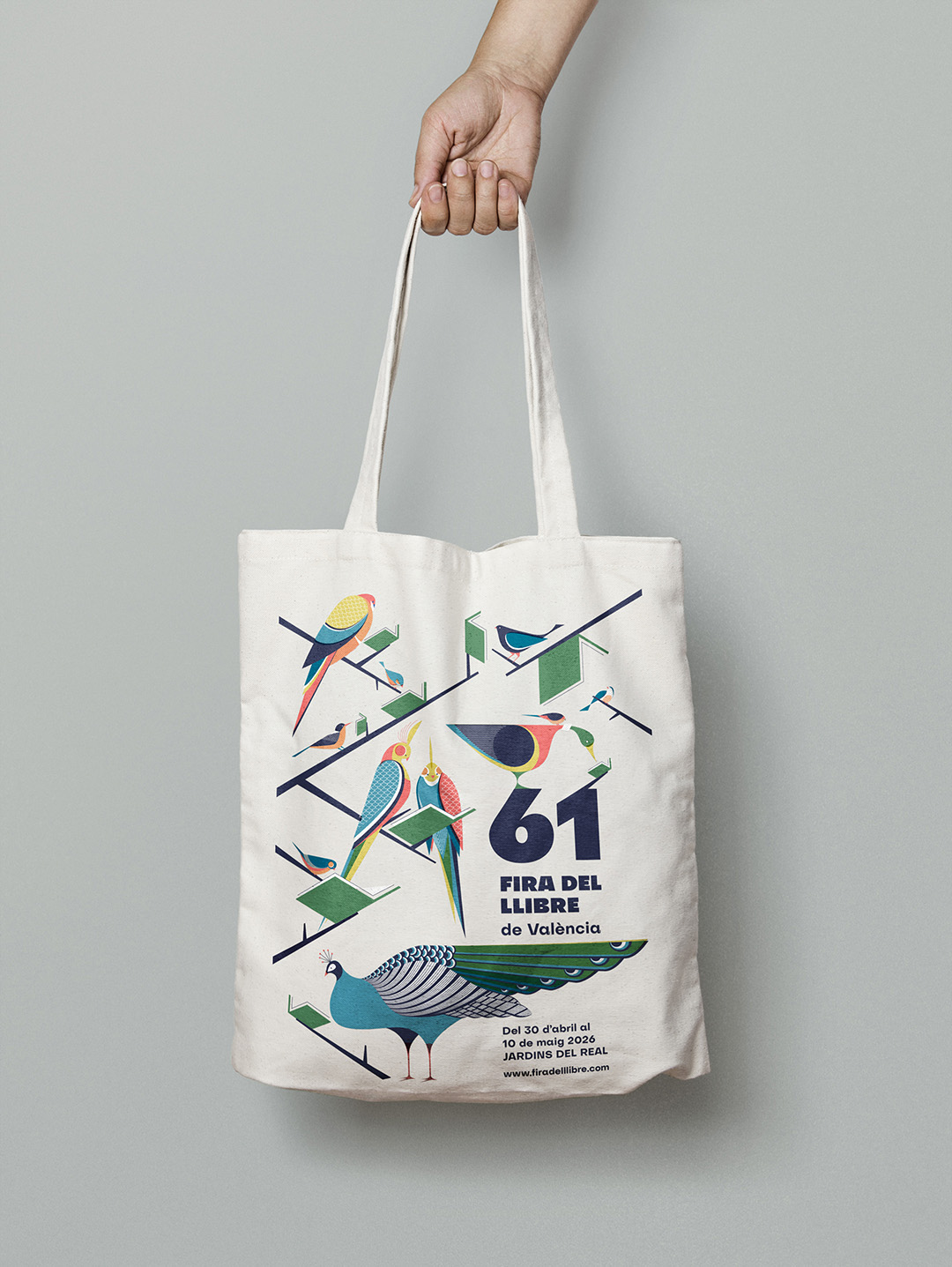 Here is the visual identity for the 61st València Book Fair. We are returning to the Jardines del Real, a place that feels like home—it is peaceful, perfect for getting lost in a story, and filled with the shade of trees and the constant song of birds.